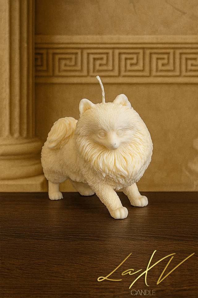 Zachwyć się świecą LaXV Candle inspirowaną jedną z najbardziej rozpoznawalnych ras – puchatym, dumnym pomeranianem! Ta ręcznie wykonana świeca z ekologicznego wosku sojowego to połączenie uroku, detalu i jakości. Realistyczna sylwetka, dopracowane futerko i figlarny charakter sprawiają, że świeca ta idealnie sprawdzi się jako prezent dla miłośników psów lub jako nietuzinkowa ozdoba wnętrza.